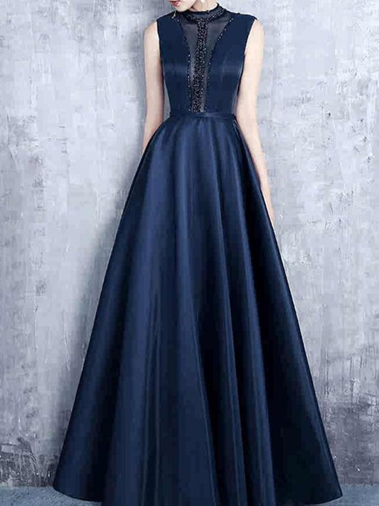 Blue Patchwork Silk Top And Cummerbund Maxi Skirts Sleeveless ML1581