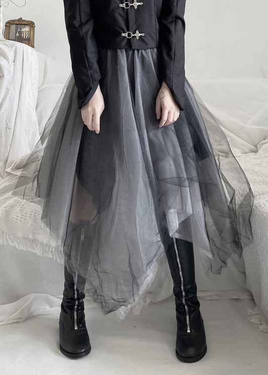 DIY Black Asymmetrical Wrinkled Solid Tulle A Line Skirt Fall FA288