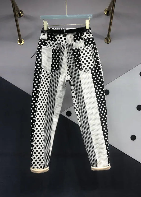 Diy Black White Dot Pockets Patchwork Denim Pants Fall ML0748