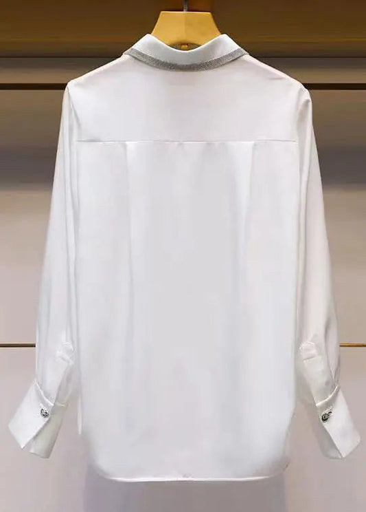 French White V Neck Low High Design Patchwork Cotton Shirts Fall FA179