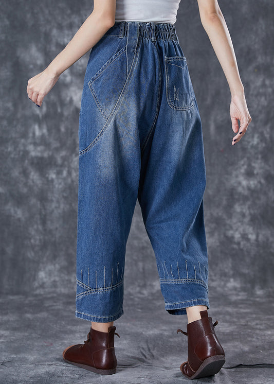 Modern Denim Blue Elastic Waist Pockets Cotton Harem Pants Fall ML1762