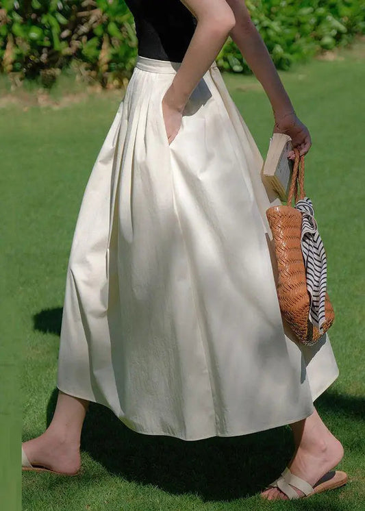 New Beige Wrinkled Pockets Cotton Skirt Summer ML3299