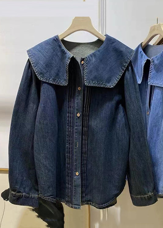 New Light Blue Peter Pan Collar Button Denim Shirts Tops Fall FA289