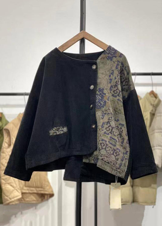 Plus Size Coffee Asymmetrical Patchwork Corduroy Tops Fall ML2588