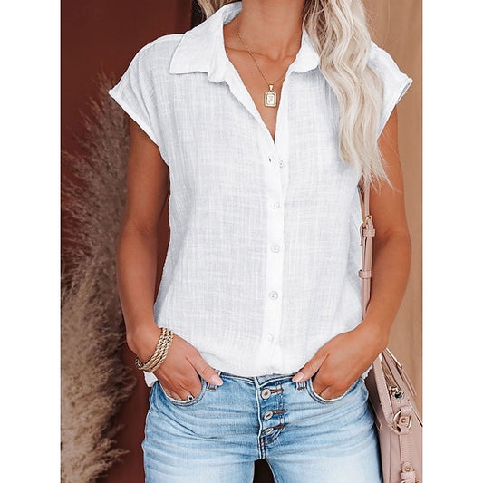 Women's Shirt Button Down Blouse Solid Color Plain Basic