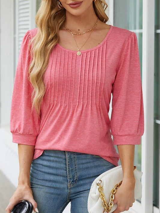 Women's Shirt Blouse Ruched Solid Color Basic Casual 3/4