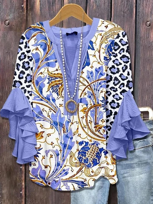 Women's Blouse Ruffle Print Floral Stylish Modern 3/4