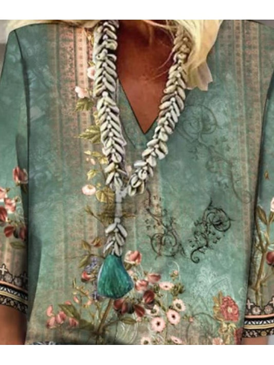 Women's Shirt Button Down Blouse Floral Daily Basic 3/4
