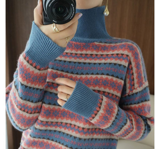 Turtleneck Geometric Patterned Sweater