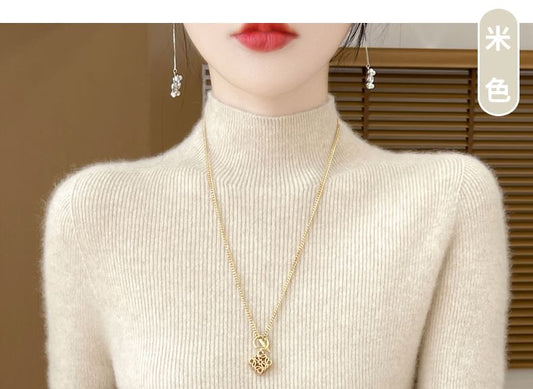 Long-Sleeve High Neck Plain Ribbed Sweater