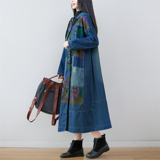 Oversized Patchwork Chinese Button Denim Cardigans LY6660