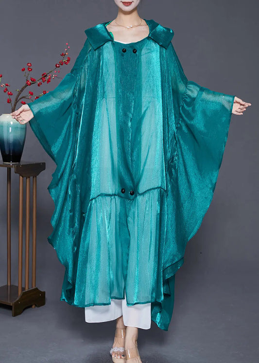 Loose Peacock Green Hooded Patchwork Silk Long Cardigans Summer LY8068
