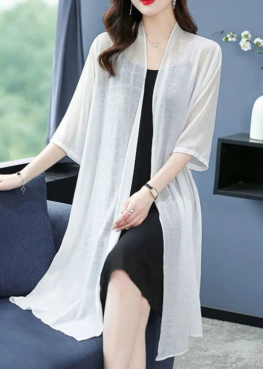Loose White V Neck Solid Thin Silk Cardigans Summer LY8075