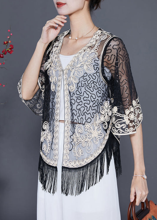 Beautiful Black Embroideried Tulle Cardigans Summer LY5546