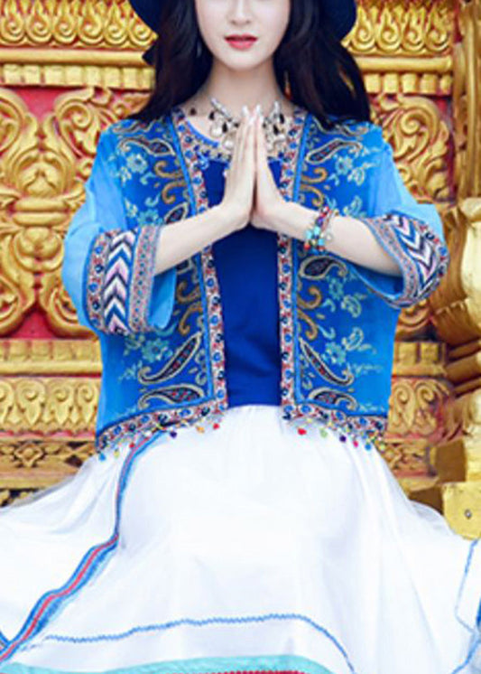 Bohemian Blue V Neck Print Tassel Cardigan Summer LY0179