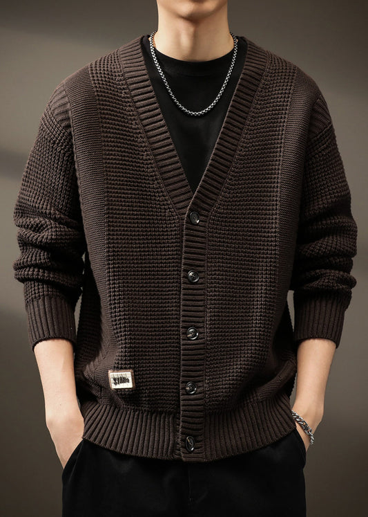 Button Coffee Cozy Knit Cardigan Simple Spring Cable Mens
