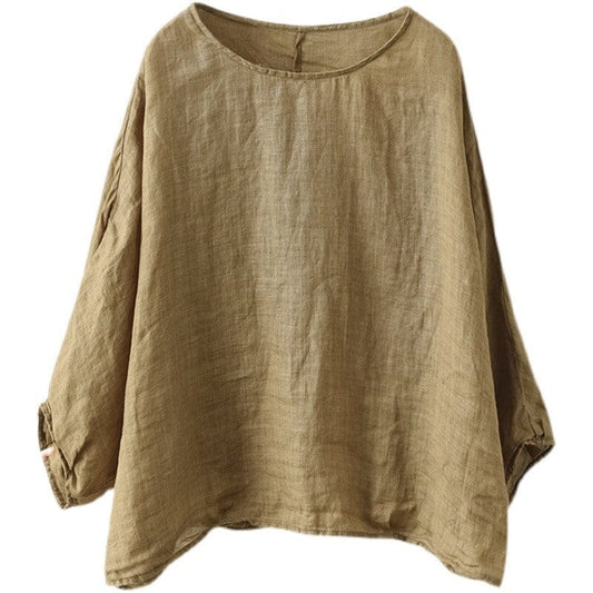 2023 Summer Loose Linen Solid T-Shirt AH437