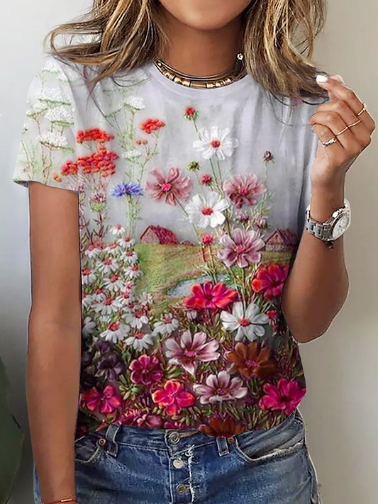 Floral Crew Neck Loose Casual T-Shirt cc169