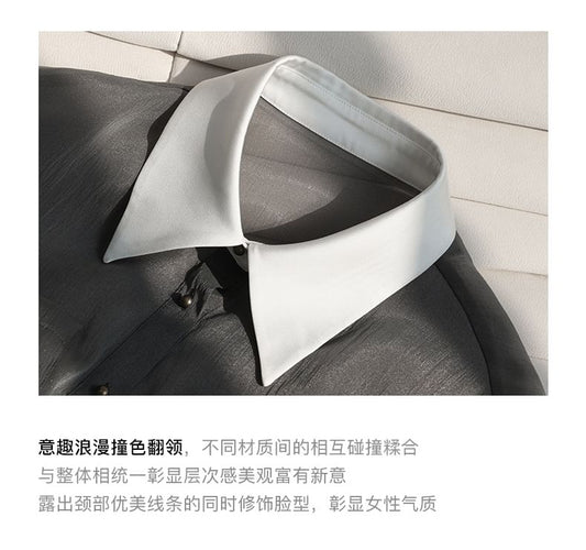 Set: Long-Sleeve Two Tone Sheer Shirt + Camisole Top