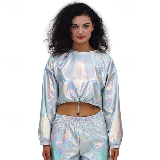 1980s Hip Hop Shiny Metallic Crop Top Sweatshirt Disco Fancy