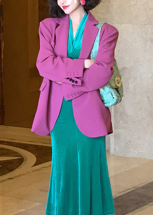 Elegant Purple V Neck Print Patchwork Tunic Silk Long Dress Long Sleeve LY1037