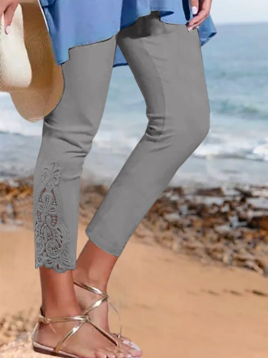 Buckle Cotton Casual Plain Patchwork lace Pants QB103