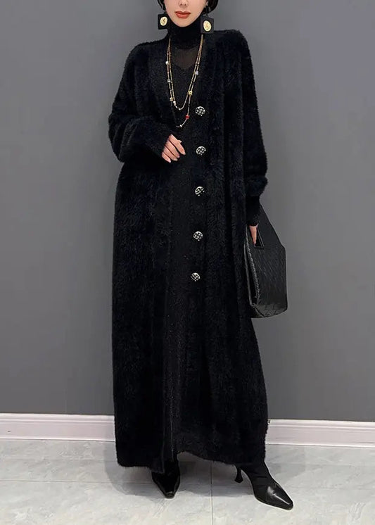 Plus Size Lila V-Ausschnitt Patchwork Nerzhaar Strickjacke Herbst ML3169