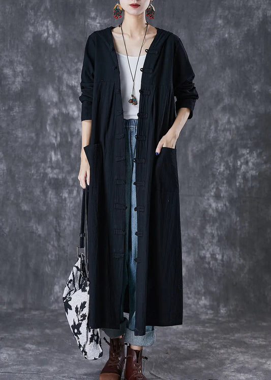 Roter Baumwoll-Trenchcoat mit Kapuze und chinesischen Knöpfen in Übergröße, Herbst ML3023