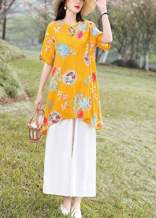 Plus Size Rüschenkragen Print Baumwolle Leinen Zweiteiler Damenbekleidung Frühling LC0433