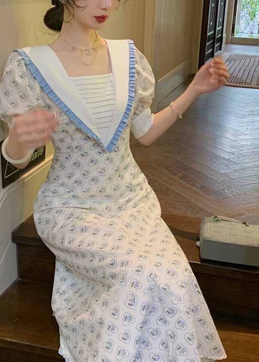 Elegante rosa Rüschen Print Lace Up Baumwolle Kleider Sommer ZL032