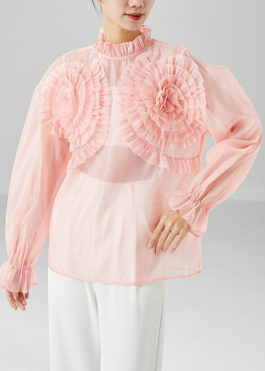 Elegante rosa Chiffonblusen mit Rüschen und Blumenmuster für den Sommer LY6145