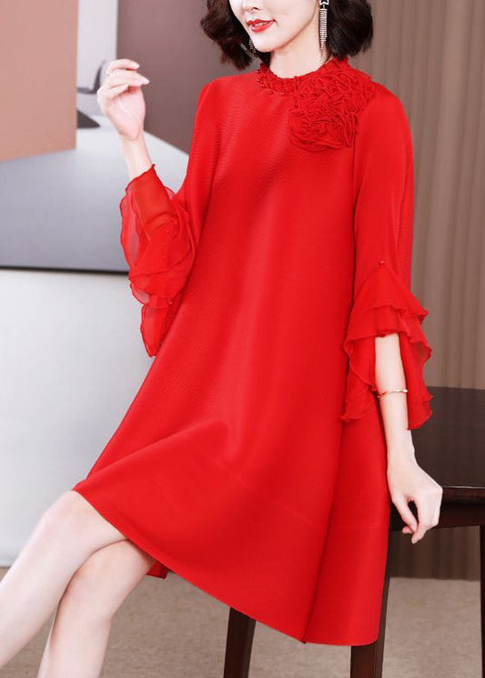 Elegantes rosa Stehkragen Blumennagelperlen-Urlaubskleid mit Blütenblattärmeln LY2725