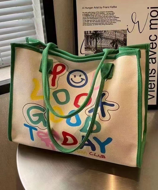 Lässige, marineblau gestreifte Canvas-Schultertasche mit großem Fassungsvermögen QF023