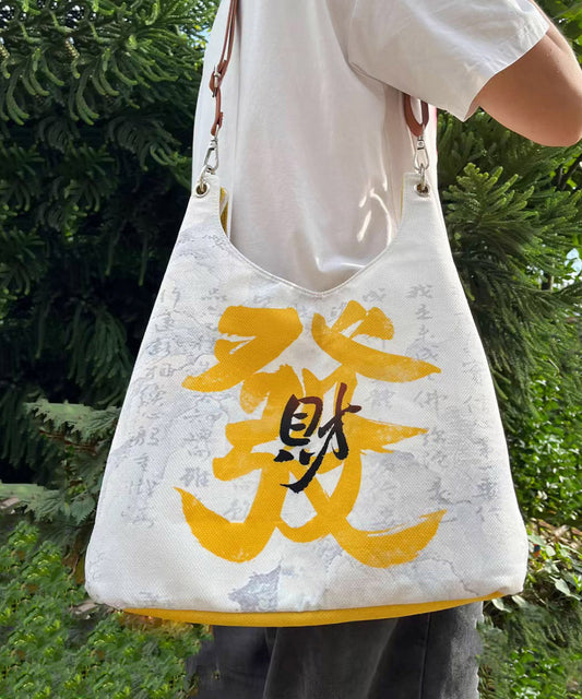 Lässige Handtasche aus Segeltuch mit weißem Aufdruck und großer Kapazität QF009