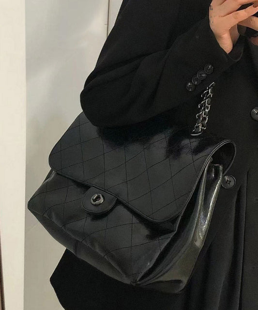 Boutique Schwarze Satchel-Handtasche aus Kalbsleder mit großem Fassungsvermögen QF016