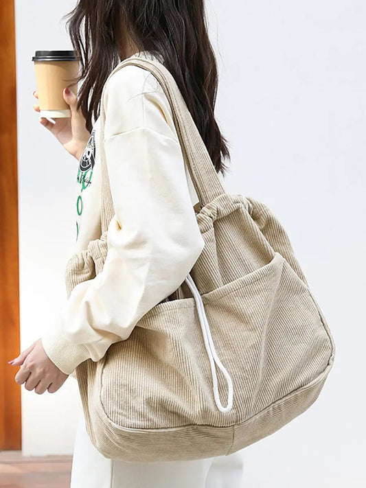 Lässige, solide, große Umhängetasche aus Cord für Damen