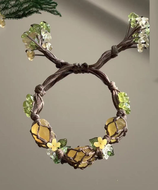 Vintage Gelb Handarbeit Weben Kristall Blumen Quaste Bettelarmband QD014