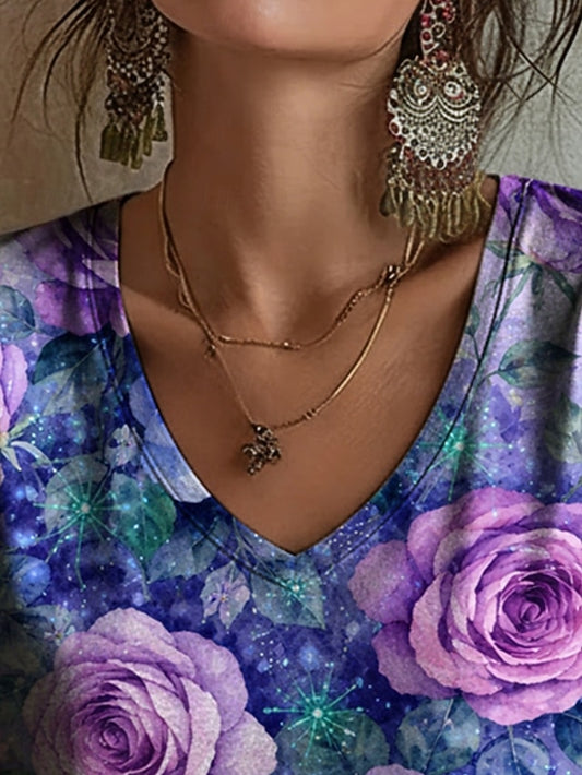 Women's T Shirt Print Floral Casual Long Sleeve V Neck