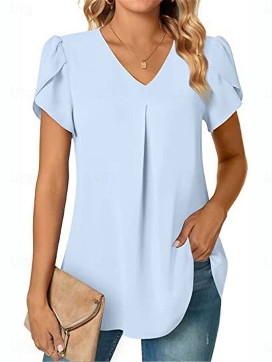 Women's Blouse Solid Color Basic Casual Short Sleeve V Neck