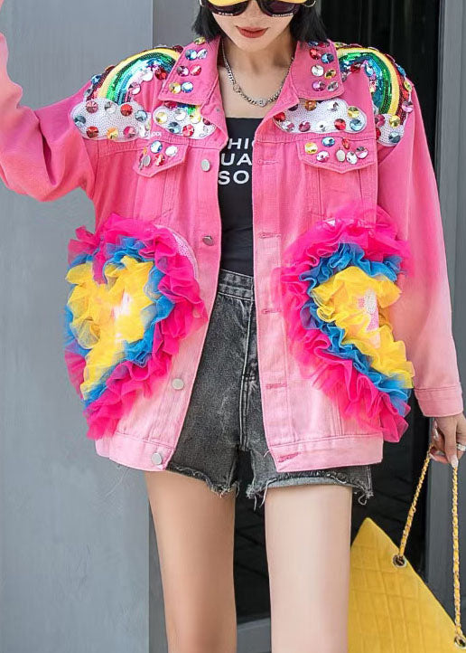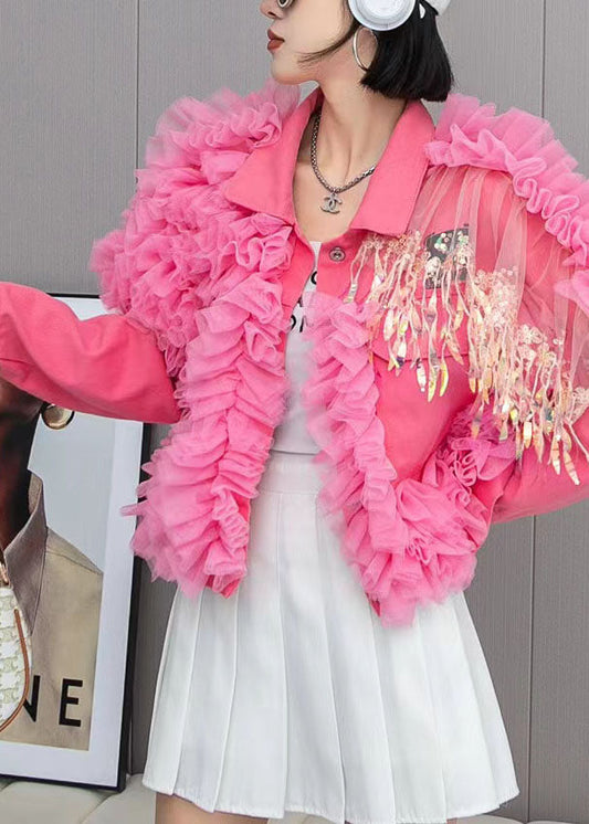 Mode Rosa Tüll Rüschen Quaste Patchwork Denim Jacken Frühling LY3984