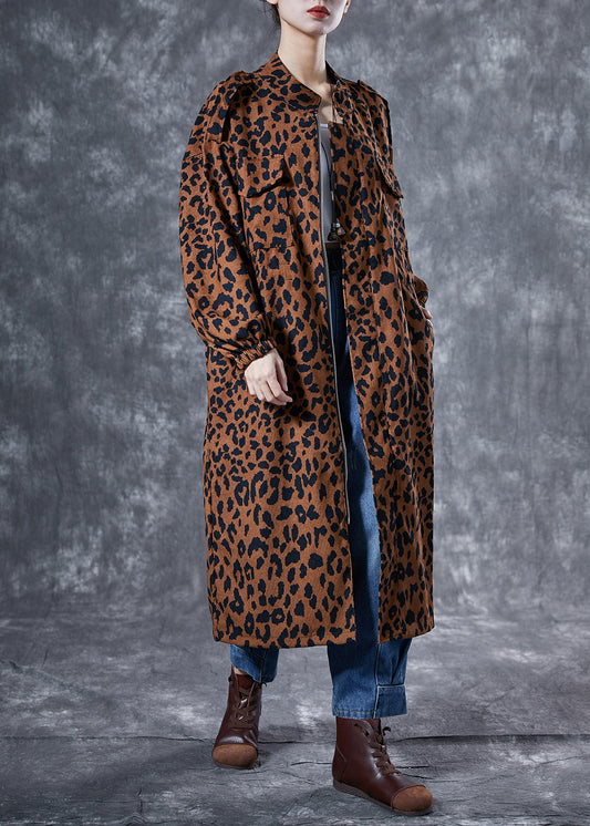 Italian Coffee Übergroßer Baumwoll-Trenchcoat mit Leopardenmuster und Taschen, Frühling LY4058