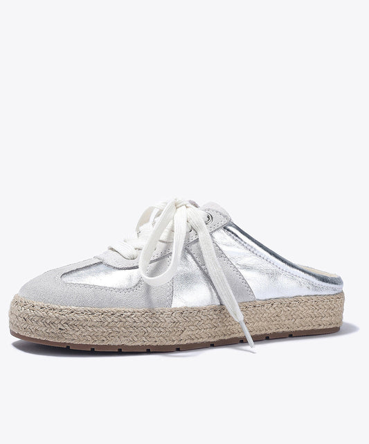 Splicing Grass Lace Slide Green Leather Up Cowhide Platform