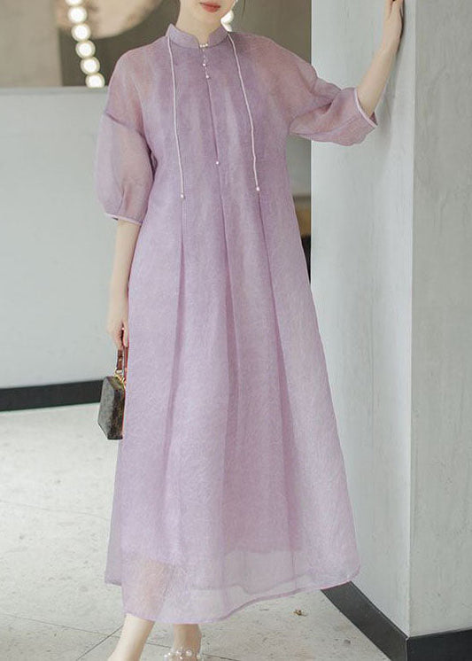 Chinesischen Stil licht Lila Nagel Perle Patchwork Seide Langes Kleid Sommer LY4580