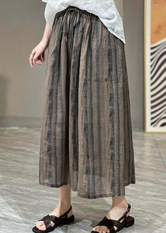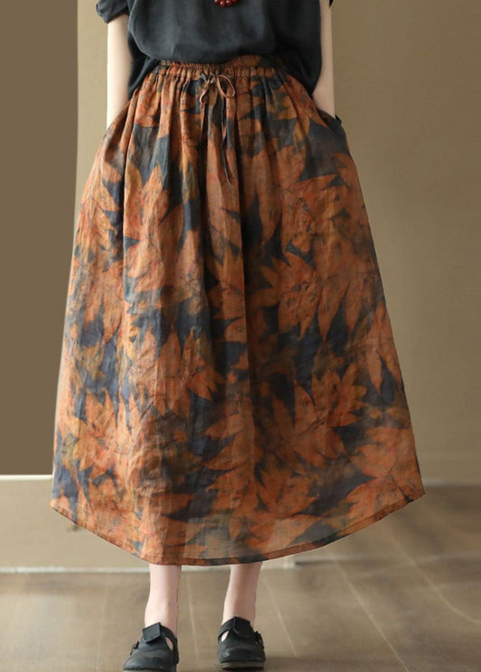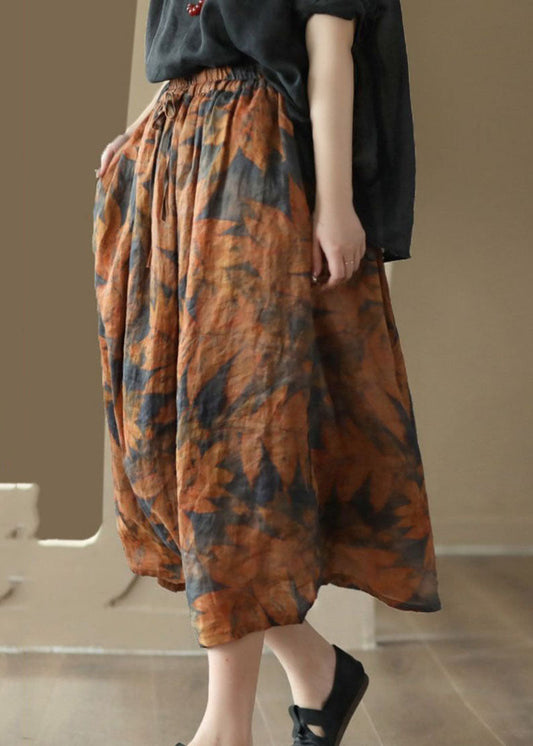 Art Orange Faltendruck Elastische Taille Patchwork Leinenrock Sommer LY4033