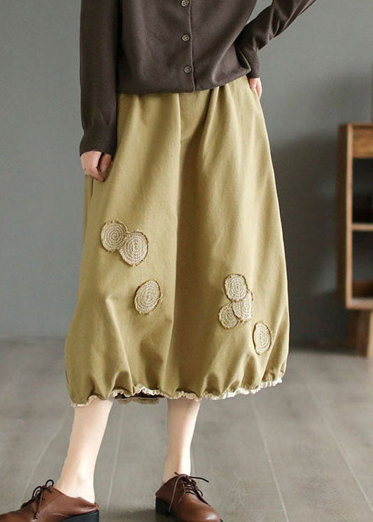 Handgemachte Khaki bestickte elastische Taille Patchwork Baumwollröcke Frühling LY4140