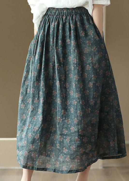 Blaue Taschen Print Patchwork Leinen Röcke Wrinkled Summer LY4055