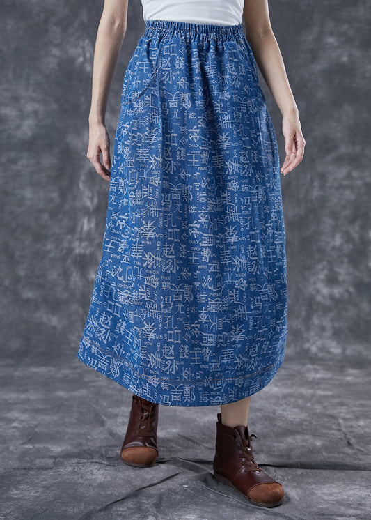Frauen Blau Elastische Taille Print Denim Röcke Sommer LY4038