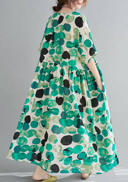 Stil O Hals Baumwolle Leinen Kleid Halbarm LY3967
