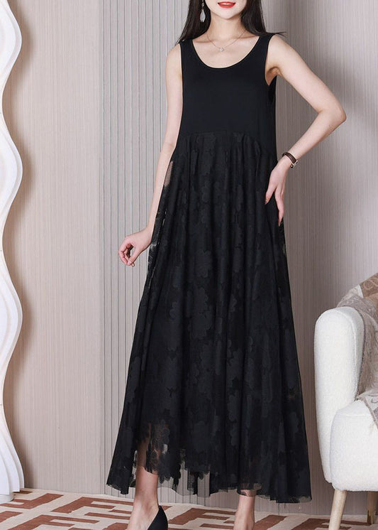 Schwarzes Patchwork-Spitzen-Urlaubskleid mit extra großem Saum für den Sommer LY3729