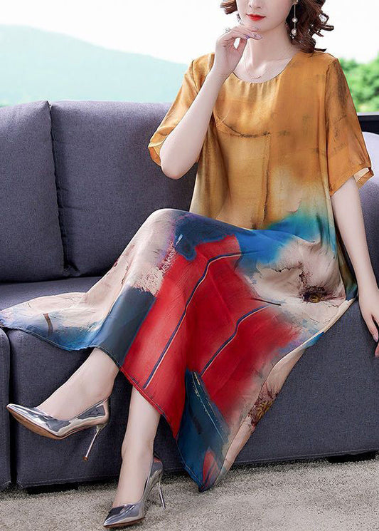 Modernes gelbes, übergroßes, bedrucktes langes Seidenkleid für den Sommer LY3730